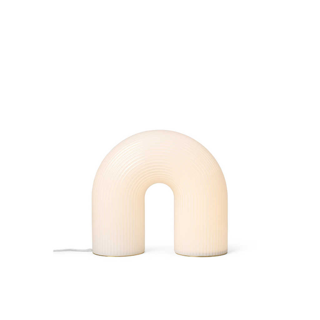 A bold light with a sculptural arc reminiscent of ancient columns, our Vuelta Floor Lamp is made from opal glass with a rippled surface that lends textural appeal to the piece. Featuring oversized dimensions, the artistic Vuelt...